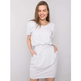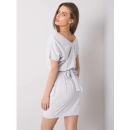 RUE PARIS Světle šedé melanžové šaty s páskem .