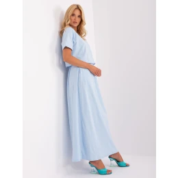 Světle modré maxi základní šaty s žebrovaným lemem .