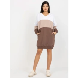 Hnědobílé základní šaty s kapsami od RUE PARIS .