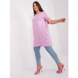 Světle fialové dámské plus size základní šaty z bavlny.