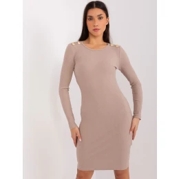 BASIC FEEL GOOD Tmavě béžové pruhované mini šaty .