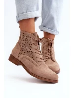 S.Barski Dámské kotníkové boty se vzorem, béžová