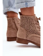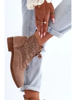 Dámské kotníkové boty vyrobené z eko semiše. Prolamovaný svršek zdobený květinami. Nasazené na plochém podpatku. Zapínání na zip na boku a navíc opatřené šněrováním, které umožňuje lepší padnutí. Zaoblené prsty. Tento model má navíc vyztuženou patu. Nezapomeňte se také podívat na další modely bot dostupných v naší nabídce!Při výběru velikosti se řiďte tabulkou velikostí.