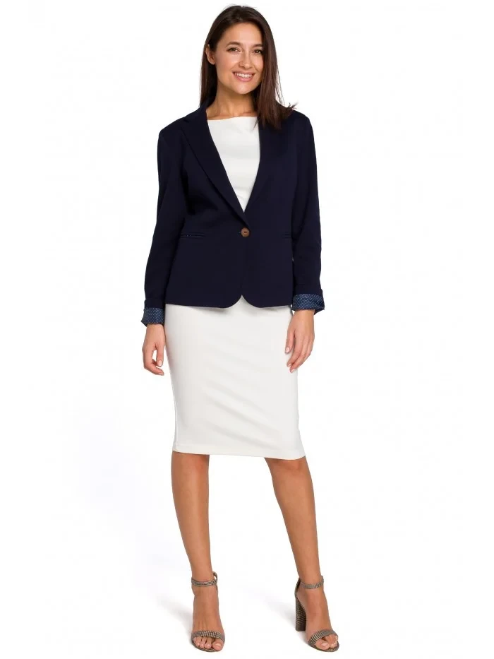 65 % bavlna 35 % polyester Ženský a přiléhavý, ale přesto velmi pohodlný pletený blejzr s rozkošnou puntíkovanou podšívkou. Je to univerzální kousek, který můžete kombinovat s džínami, tričkem i klasickou košilí. PODROBNOSTI O VÝROBKU: pletenina na míru blejzr s jedním knoflíkem přední kapsy dlouhé rukávy plně podšitý náš model je vysoký 166 cm a nosí velikost S