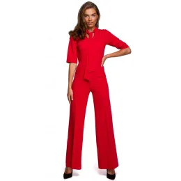 S243 Elegantní overal se zavazováním za krkem - červený