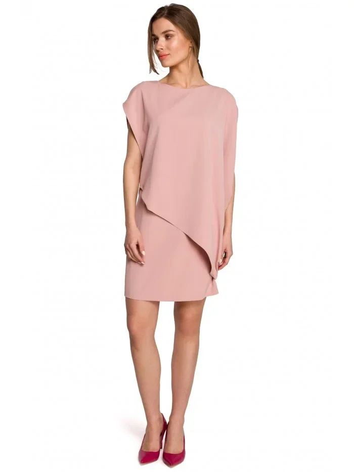 S262 Vrstvené šaty - pudrové