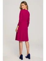 S325 Přiléhavé šaty s vázaným výstřihem - švestka