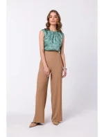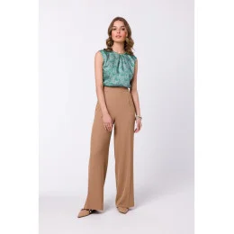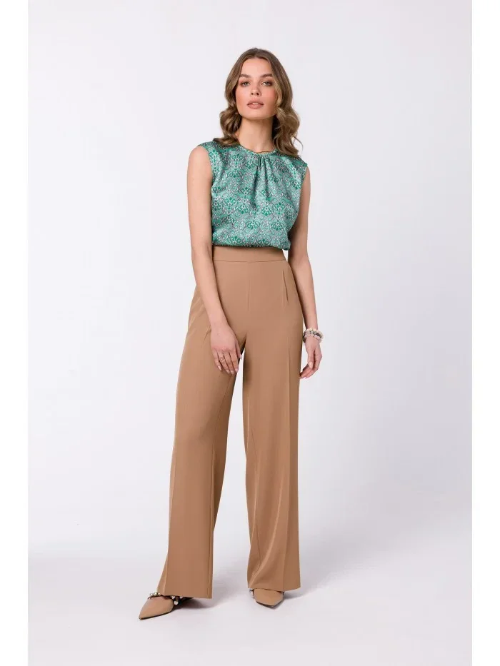 95% polyester 5% elastan Široké kalhoty se záhyby v pase - klasické a trendy. DETAILY VÝROBKU: tkaná látka řasení široký design nohavic záhyby v pase skryté zapínání na zip v zadních bočních kapsách náš model měří 174 cm a nosí velikost S