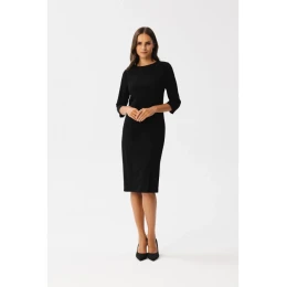 S350 Plášťové šaty s rozparkem vpředu - černé