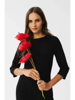 65% polyester 30% wiskoza 5% elastan PODROBNOSTI O PRODUKTU: tužkové šaty z tkané látky s výstřihem 3/4 rukávy délka pod kolena s předním rozparkem skrytý zadní zip bez podšívky naše modelka měří 174 cm a nosí velikost S navrženo a vyrobeno v Polsku