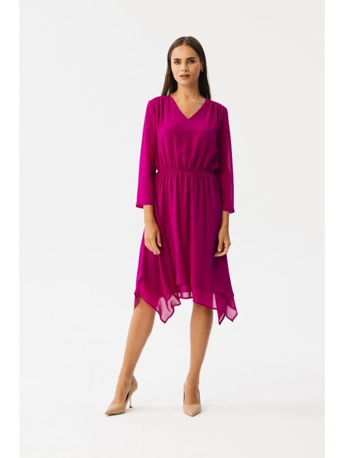 100% polyester PODROBNOSTI O PRODUKTU: tkaná látka - šifon asymetrické dvouvrstvé šaty výstřih ve tvaru V elastický pas délka pod kolena částečně podšité naše modelka je vysoká 174 cm a nosí velikost S navrženo a vyrobeno v Polsku