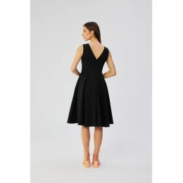 65 % polyester 30 % wiskoza 5 % elastan DETAILY PRODUKTU: tkaná látka vypasované šaty bez rukávů se zaobleným výstřihem vpředu výstřih ve tvaru písmene V vzadu podkasaný pas sahající pod kolena nepodšitý skrytý zip na zádech naše modelka měří 176 cm a nosí velikost S navrženo a vyrobeno v Polsku