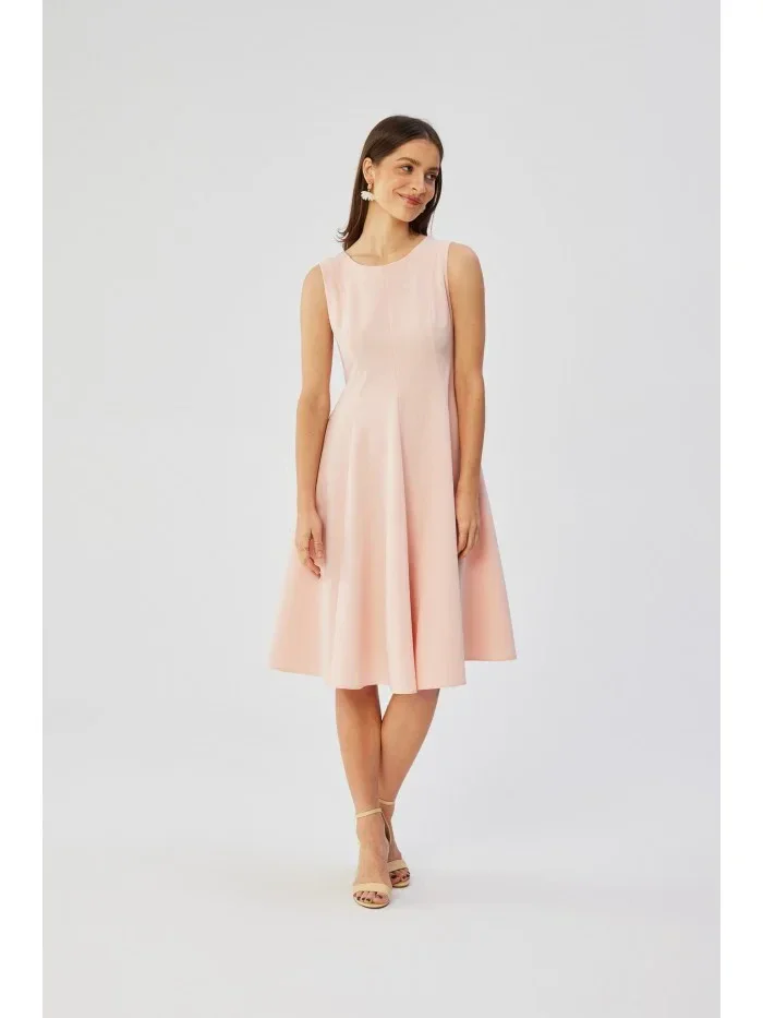 S358 Přiléhavé šaty bez rukávů - pudrové