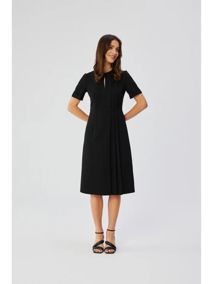 S361 Šaty Shift se záhyby na bocích - černé