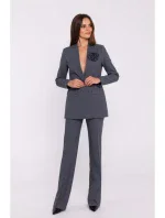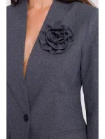 97% polyester 3% elastan DETAILY VÝROBKU: tkaný materiál sako na míru bez límečku zapínání na jeden knoflík ozdobné odnímatelné kapsy s květinovou klopou plně podšité náš model měří 174 cm a nosí velikost S