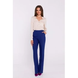 97% polyester 3% elastan PODROBNOSTI O PRODUKTU: tkaný materiál nohavice s vykrojenými nohavicemi vysoký pas skrytý zadní zip naše modelka měří 174 cm a nosí velikost S