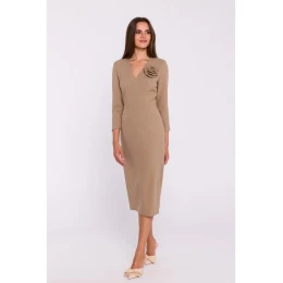 97% polyester 3% elastan DETAILY PRODUKTU: tkaná látka pouzdrové šaty střední délky s výstřihem do V střih na míru skrytý boční zip podšité ozdobná odnímatelná květina naše modelka je vysoká 174 cm a nosí velikost S navrženo a vyrobeno v Polsku