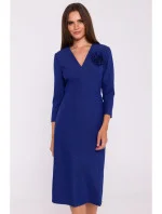 97% polyester 3% elastan DETAILY PRODUKTU: tkaná látka pouzdrové šaty střední délky s výstřihem do V střih na míru skrytý boční zip podšité ozdobná odnímatelná květina naše modelka je vysoká 174 cm a nosí velikost S navrženo a vyrobeno v Polsku