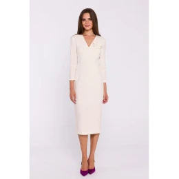 97% polyester 3% elastan DETAILY PRODUKTU: tkaná látka pouzdrové šaty střední délky s výstřihem do V střih na míru skrytý boční zip podšité ozdobná odnímatelná květina naše modelka je vysoká 174 cm a nosí velikost S navrženo a vyrobeno v Polsku