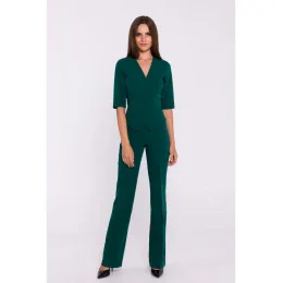 65% polyester 30% wiskoza 5% elastan DETAILY PRODUKTU: tkaný materiál jednodílný overal s peplumem krátký rukáv výstřih do V nohavice s řasením bez podšívky naše modelka měří 174 cm a nosí velikost S