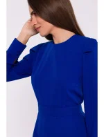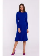 65% polyester 30% wiskoza 5% elastan DETAILY PRODUKTU: tkaná látka rozevláté šaty kulatý výstřih dlouhé nadýchané rukávy s manžetami na knoflíky detail knoflíku pásek v pase délka pod kolena bez podšívky naše modelka je vysoká 174 cm a nosí velikost S navrženo a vyrobeno v Polsku