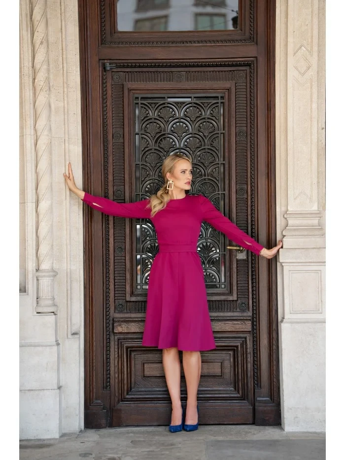 S378 Rozšířené šaty s páskem - švestka
