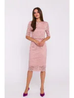 S379 Krajkové šaty s dvouvrstvým topem - pudrové