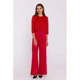 Vrchní část: 90% nylon 10% elastan Podšívka: 95% polyester 5% elastan DETAILY PRODUKTU: kombinéza z tkané látky a krajky široká nohavice dvouvrstvý vrchní díl s krajkovou vnější vrstvou krátké krajkové rukávy skrytý zip na zádech naše modelka měří 174 cm a nosí velikost S navrženo a vyrobeno v Polsku