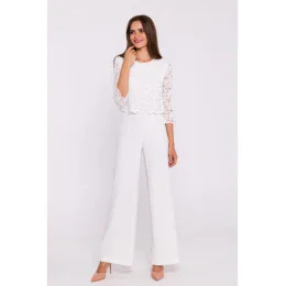 S381 Kombinéza s krajkovými detaily - ecru barva