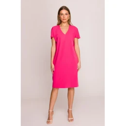 S392 Šaty uvolněného střihu s výstřihem do V - růžové