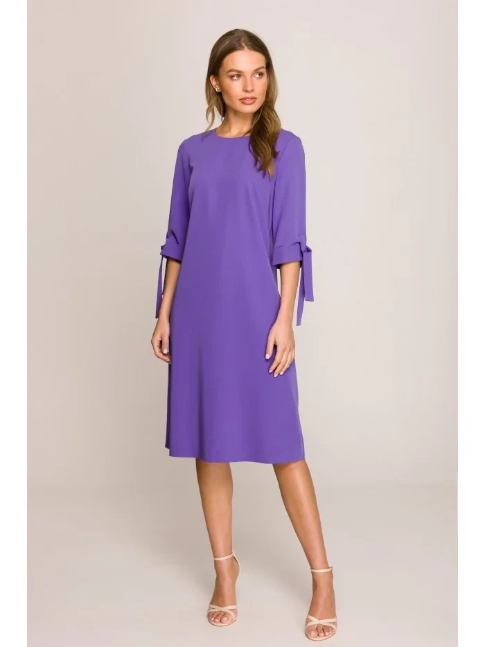 S393 Šaty áčkového střihu s vázacími rukávy - fialové