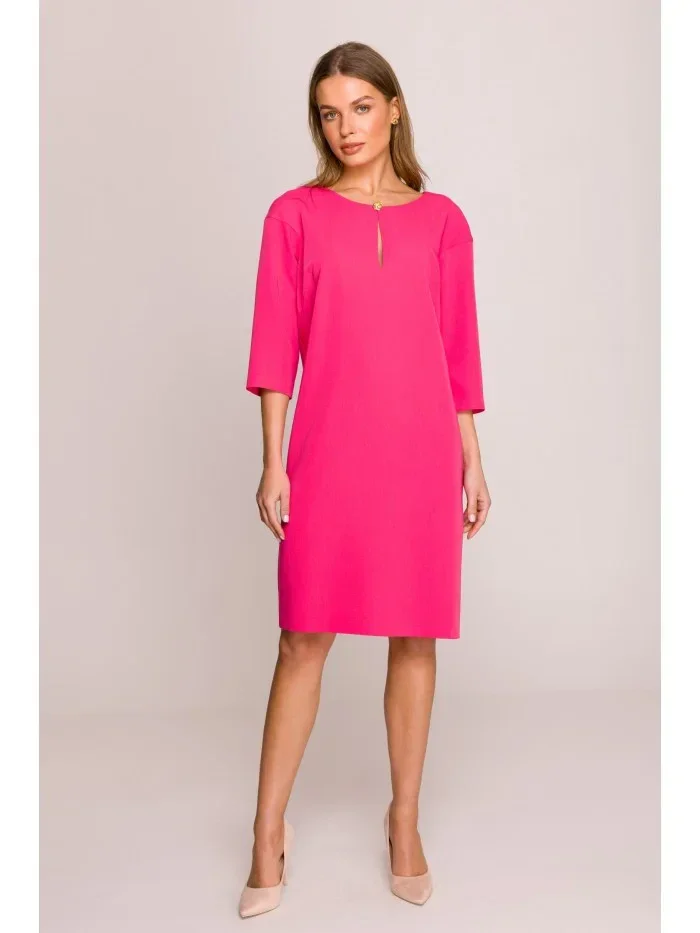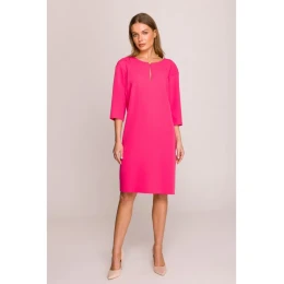 S394 Šaty uvolněného střihu s výstřihem s klíčovou dírkou - růžové