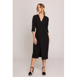 S396 Šaty se zavinovacími detaily ve střední délce - černé