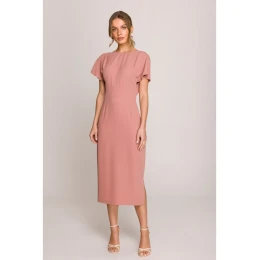 S398 Tužkové šaty s rozparkem na boku - růžové