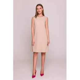 65% polyester 30% wiskoza 5% elastan Podšívka: 95% polyester 5% elastan Materiál: hladká, mírně elastická tkanina se saténovým povrchem PODROBNOSTI O VÝROBKU Výstřih: kulatý, přiléhající ke krku, s kovovou ozdobou uprostřed Rukávy: bez rukávů Zapínání: skrytý zip na zádech Kapsy: žádné Podšívka: s podšívkou Model: S408 Navrženo a vyrobeno v Polsku Modelka je vysoká 170 cm a má na sobě velikost S STYL A STŘIH Střih: silueta do A Tvar: volný střih Délka: nad kolena