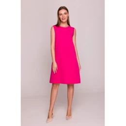 65% polyester 30% wiskoza 5% elastan Podšívka: 95% polyester 5% elastan Materiál: hladká, mírně elastická tkanina se saténovým povrchem PODROBNOSTI O VÝROBKU Výstřih: kulatý, přiléhající ke krku, s kovovou ozdobou uprostřed Rukávy: bez rukávů Zapínání: skrytý zip na zádech Kapsy: žádné Podšívka: s podšívkou Model: S408 Navrženo a vyrobeno v Polsku Modelka je vysoká 170 cm a má na sobě velikost S STYL A STŘIH Střih: silueta do A Tvar: volný střih Délka: nad kolena