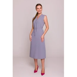 S410 Šaty áčkového střihu s vázáním a výstřihem do V - holubičí šeď
