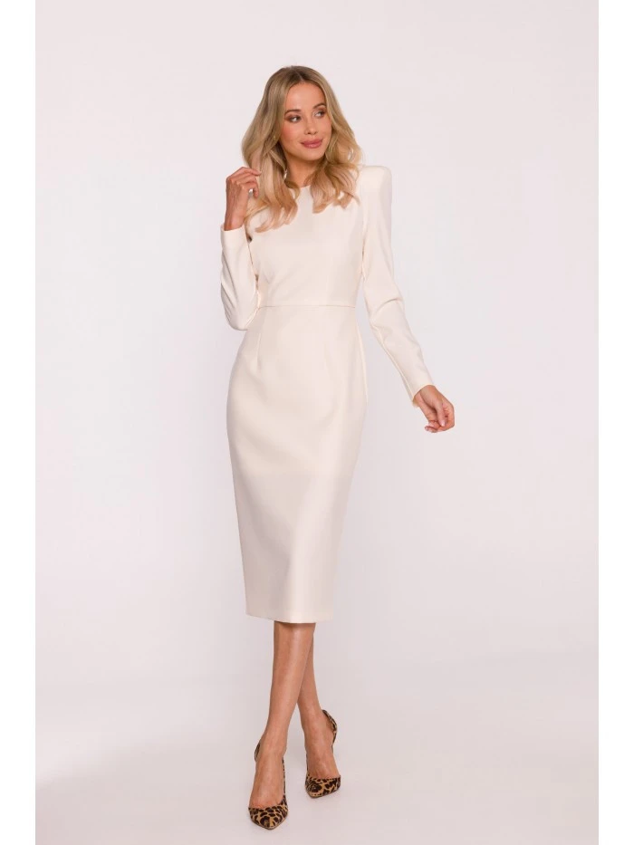 S412 Tužkové šaty s ozdobnými rameny - slonová kost