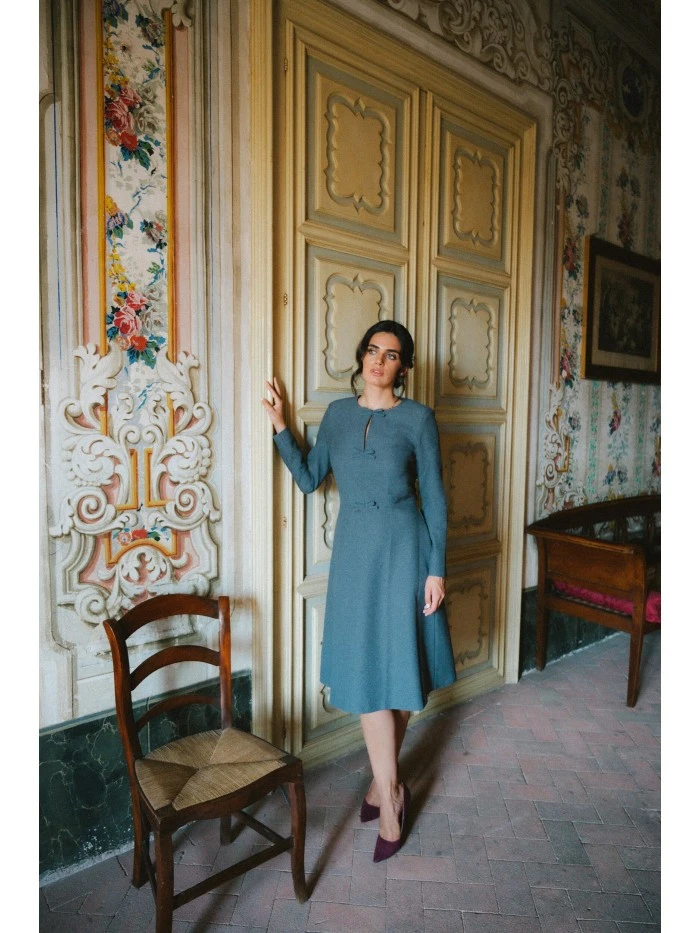 materiál: 97% polyester 3% elastan LÁTKA: hladká tkaná látka s melanžovou strukturou PODROBNOSTI O PRODUKTU Výstřih: kulatý těsně u krku s rozparkem vpředu Rukávy: dlouhé Kapsy: kapsy v bočním švu Detaily: ozdobné mašle uprostřed předního dílu Zapínání: skrytý zip vzadu Podšívka: žádná Model: S413 Navrženo a vyrobeno v Polsku Modelka je vysoká 174 cm a nosí velikost S STYL A STŘIH Styl: trapézové šaty s ozdobnými mašlemi vpředu Tvar: uvolněná áčková linie, volnější v oblasti boků Délka: pod kolena