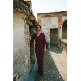 S416 Kombinéza s volánkovými rukávy - bordó