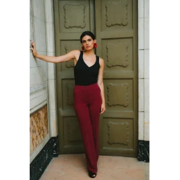 63% polyester 33% wiskoza 4% elastan LÁTKA Tkanina: hladká tkanina s měkkým povrchem PODROBNOSTI O PRODUKTU Pas: střední výška Zapínání: knoflík vpředu a skrytý zip Kapsy: boční kapsy Nohavice: dlouhé, rovné, s řasením Podšívka: žádná Model: S418 Navrženo a vyrobeno v Polsku Modelka je vysoká 174 cm a nosí velikost S STYL A STŘIH Styl: klasické kalhoty na míru Tvar: vypasované v pase a na bocích, rovné nohavice Délka: po celé délce, až na zem