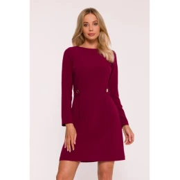 S419 Šaty s ozdobnými knoflíky v pase - bordó