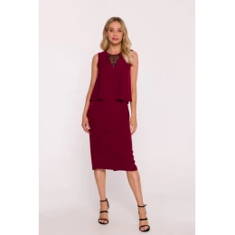 materiál: 95% polyester 5% elastan LÁTKA: hladká tkanina s jemným leskem PODROBNOSTI O PRODUKTU Výstřih: ve tvaru V s jemnou krajkovou vsadkou Rukávy: bez rukávů Sukně: vypasovaný tužkový střih s rozparkem na zádech Horní díl: dvouvrstvý - volnější horní vrstva decentně zakrývá pas a boky Zapínání: dva skryté zipy na zádech Model: S422 Navrženo a vyrobeno v Polsku Modelka je vysoká 174 cm a nosí velikost S STYL A STŘIH Styl: elegantní tužkové šaty s dvouvrstvým horním dílem Tvar: vypasovaná sukně, volnější horní díl s krajkovým detailem Délka: pod kolena