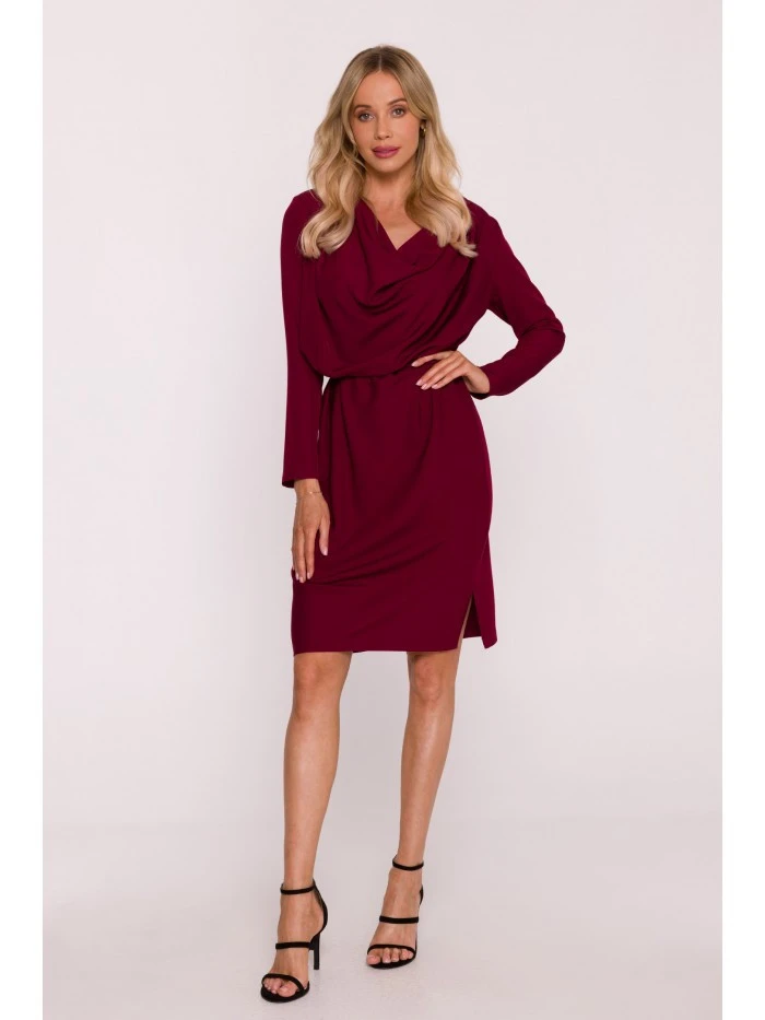 S428 Šaty s výstřihem - bordó