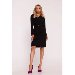 materiál: 95% polyester 5% elastan LÁTKA: hladká látka s jemným leskem PODROBNOSTI O PRODUKTU Výstřih: smyslný, jemně řasený výstřih typu cowl Rukávy: dlouhé Sukně: rovná, s bočním rozparkem Pas: zvýrazněný elastickým páskem ze stejné látky Zapínání: žádné - slip-on styl Model: S428 Navrženo a vyrobeno v Polsku Modelka je vysoká 174 cm a nosí velikost S STYL A STŘIH Styl: elegantní tužkové šaty s výstřihem typu cowl Tvar: volnější horní díl, zúžená sukně Délka: nad kolena