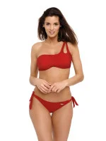 Podprsenka má vyztužené košíčky bez push-up, boční velrybí kostice a umožňuje pěkně tvarovat prsa v dekoltu. Asymetrická ramínka vypadají zajímavě. Obvod se pohodlně zavazuje na zádech. Součástí kompletu jsou svůdné kalhotky se zavazováním na bocích. 80 % polyamid, 20 % elastan.