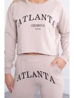 Představujeme vám sadu halenky a kalhot. Halenka s potiskem Atlanta. Kalhoty s kapsami a zavazováním v pase. Sada je vyrobena z vysoce kvalitního materiálu. Velikost je univerzální a vyhovuje dámám velikosti S, M nebo L.