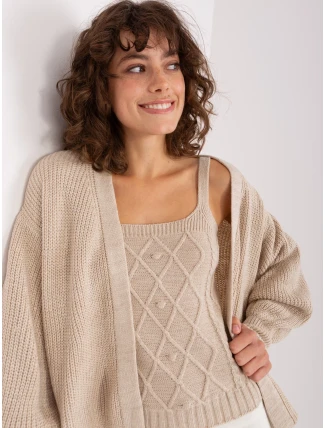 Rozměry soupravy v jedné velikosti měřené na plocho: šířka topu v podpaží - 45 cm, délka topu - 55 cm, šířka kardiganu v podpaží - 75 cm, délka rukávů - 58 cm, délka kardiganu - 57 cm.