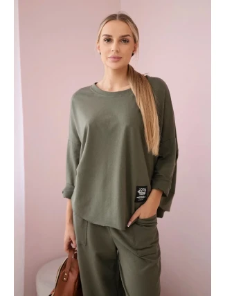 Komplet bavlněný mikina + kalhoty světlá khaki