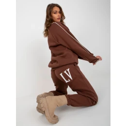 Tmavě hnědá tepláková souprava oversize střihu s potiskem .